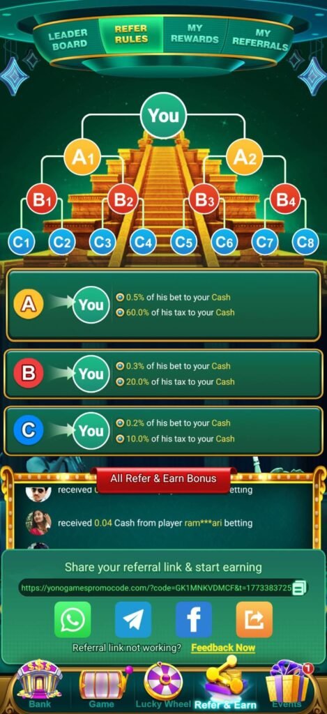 - Jab koi aapke link se app join karta hai, aapko bonus milta hai